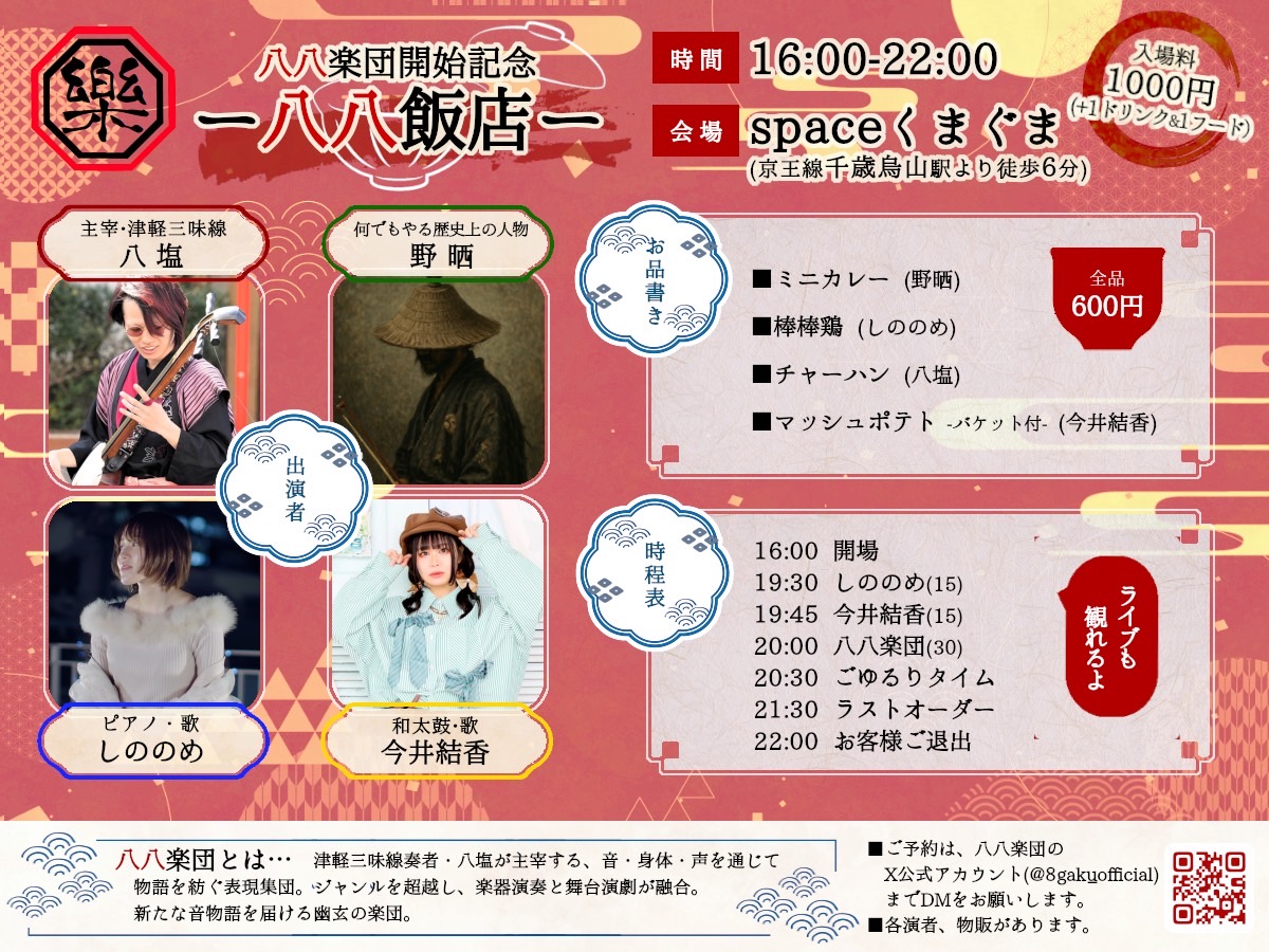 八八楽団(八塩、紫けろん、しののめ、今井結香、野晒、虚戯)